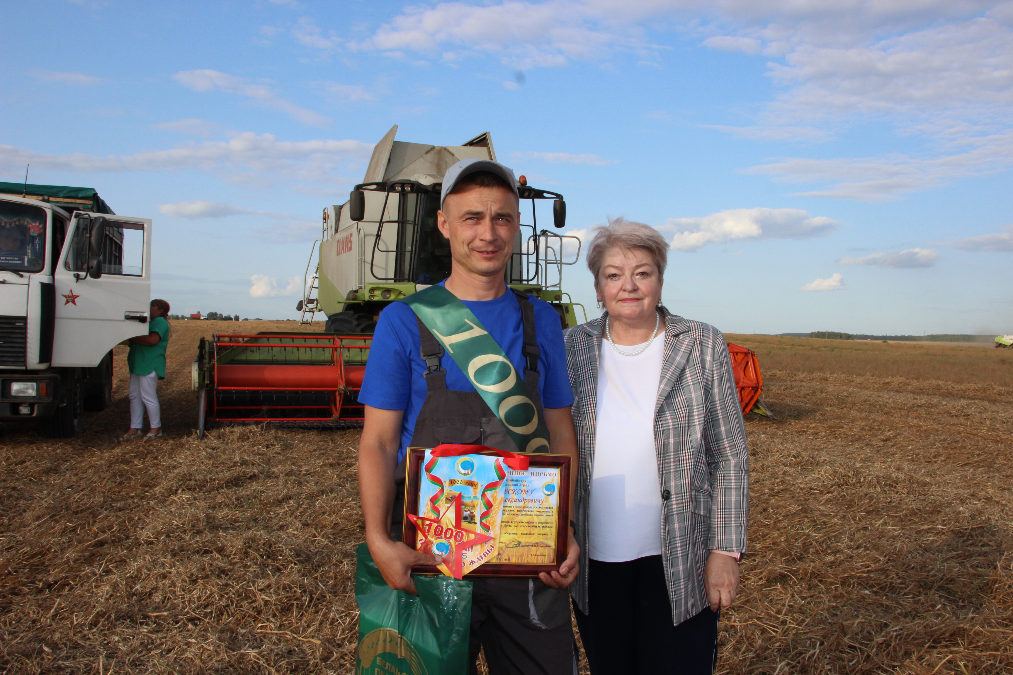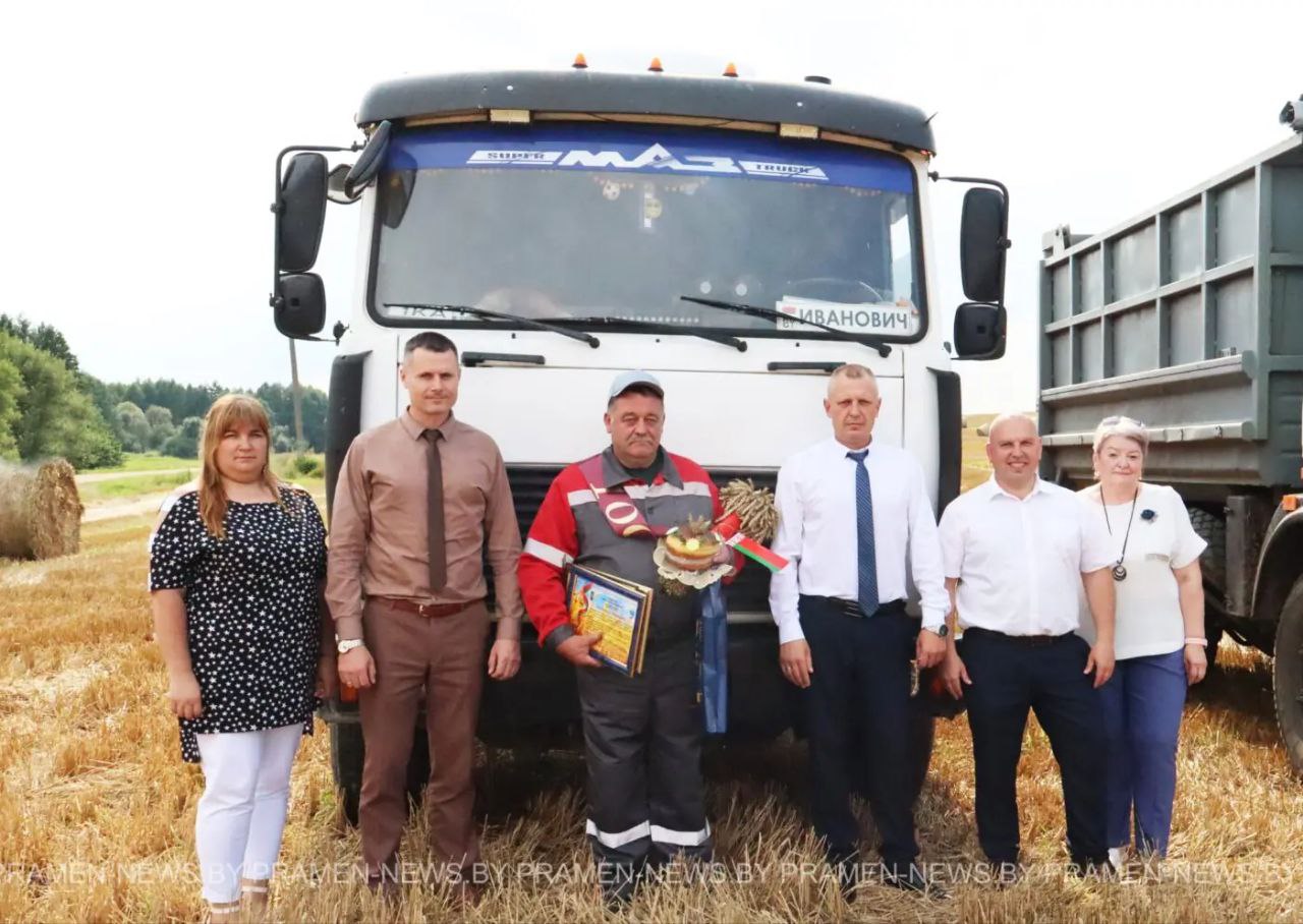 Первыми рубеж в тысячу тонн намолоченного и перевезенного зерна в Столбцовском районе достигли водители Владимир Крень и Игорь Тыдрыш и старший комбайнер Максим Паплавский с ОАО «Вишневецкий – агро», водители Сергей Каспарович и Николай Дударевич с ОАО «Жатерево».