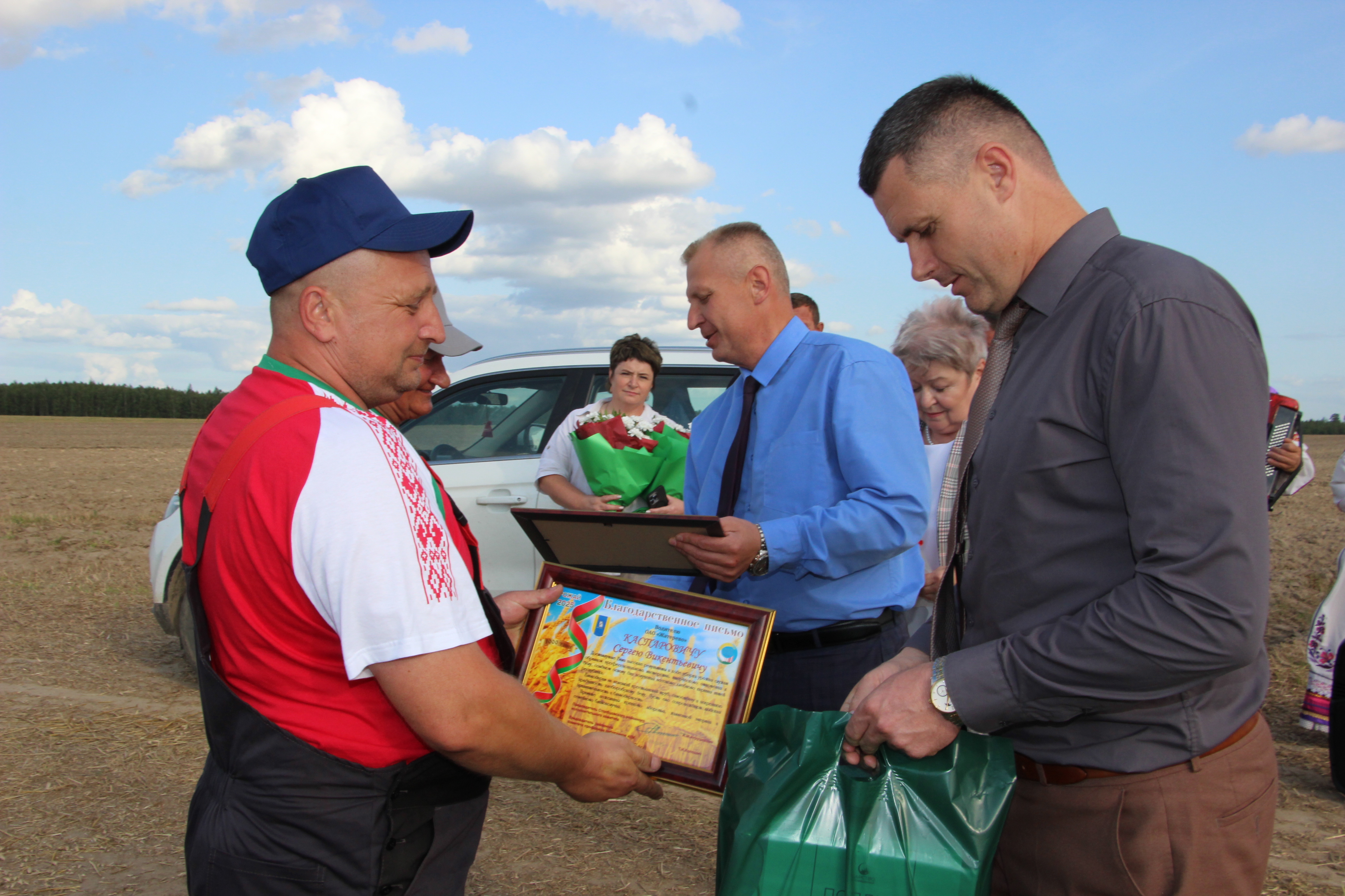 «Вы настоящие герои нашего времени»- процитировала слова Президента нашей страны А. Г. Лукашенко адресованное всем участникам уборочной кампании–Тамара Колошич и пожелала любить дело которое выбрали, свои семьи, любить страну в которой живем, мирного неба, крепкого здоровья и результативной работы. К поздравлениям присоединились руководство и профсоюзные комитеты сельскохозяйственных организаций.