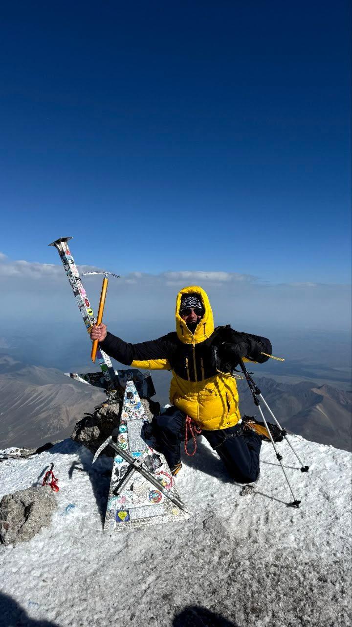 В этот раз Виталий вместе с группой альпинистов отправился покорять Эльбрус — высочайшую вершину России, достигающую 5642 метров над уровнем моря. Подъём на вершину начался ранним утром, и уже в 7:50 альпинисты стояли на самой вершине Кавказа.