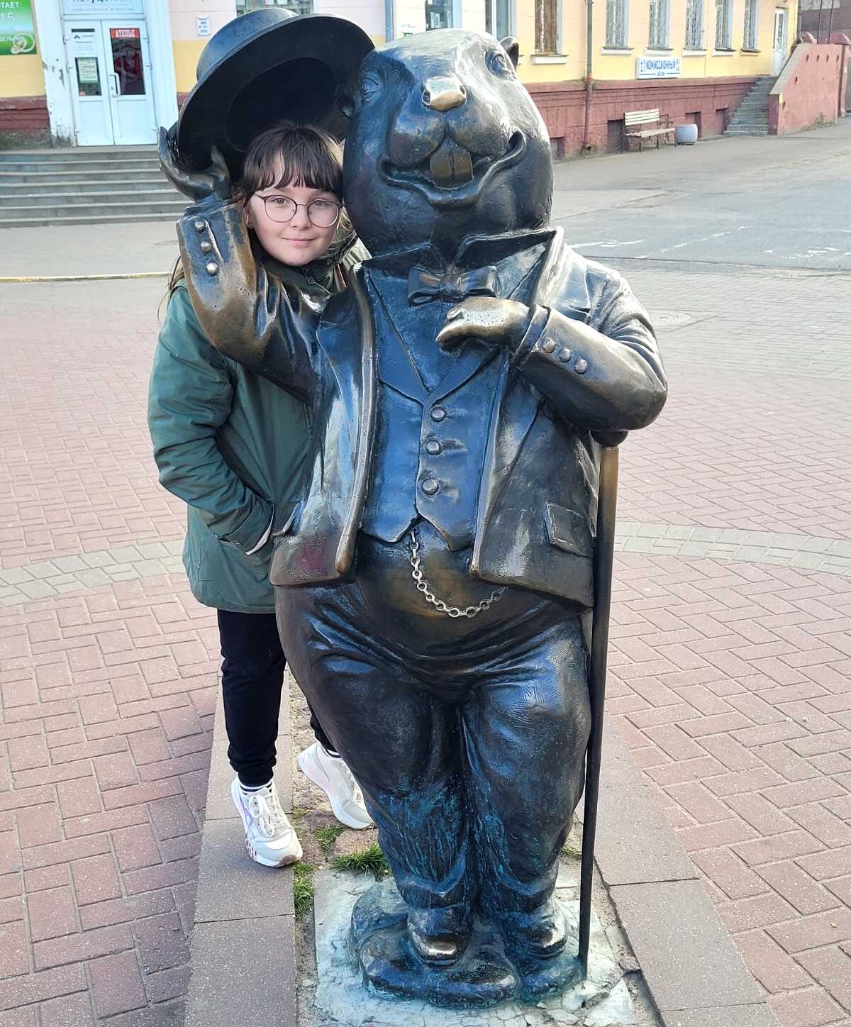 Завершением поездки стала обзорная экскурсия по городу Бобруйску. Бобруйск – один из крупнейших промышленных центров страны и ассоциируется он, прежде всего, конечно же, с бобрами. Этим чудесным животным установлены целых три оригинальных памятника, куда и отправились участники экскурсии. На них бобр изображён в виде дородного франтоватого мещанина, одетого по моде XIX века. Костюм выбран не случайно — этим временем датируется живописная застройка центра города, который пересекает широкая пешеходная улица.