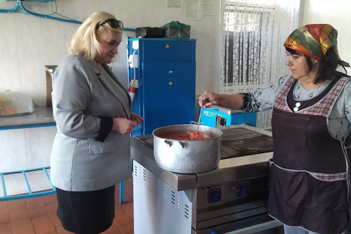 Председатель Логойской районной профсоюзной организации работников АПК Алиса Курбанова ознакомилась с тем, чем кормят механизаторов, и оценила условия труда в столовой. Было отмечено, что питание организовано на должном уровне: все санитарные нормы соблюдаются, продукты свежие и качественные, рацион сбалансированный.