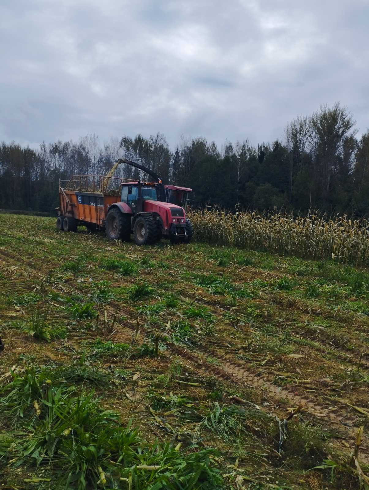 Как пояснил главный агроном хозяйства Леонид Ковалев, им необходимо убрать на силос кукурузу с 1462 га, еще на 350 га она выращивалась на зерно. В день нашего посещения на кукурузном поле вместе с Александром Угольником на КВК трудились такие же опытные и ответственные механизаторы Александр Майтак и Сергей Крактун, которые перед этим отличились отличным трудом и на уборке зерновых. Скошенную ими массу к силосным траншеям доставляли 9 автомобилей и тракторов с прицепами.