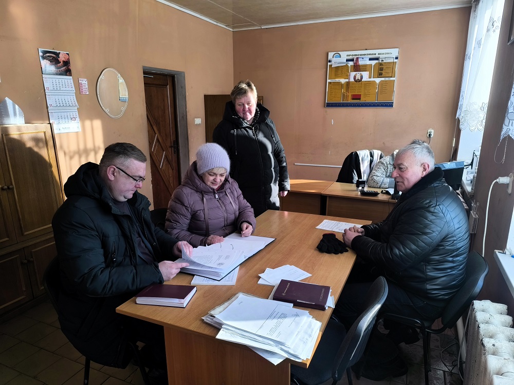 Мобильная группа Молодечненского райисполкома по оказанию практической и методической помощи в обеспечении соблюдения законодательства об охране труда провела мониторинг на производственном участке «Марково» ОАО «Молодечненский райагросервис». В состав группы вошли представители различных ведомств и организаций, включая главного государственного инспектора Молодечненского межрайонного отдела Минского областного управления Департамента государственной инспекции труда Министерства труда и социальной защиты Республики Беларусь Евгения Кореневского, заместителя начальника отдела трудовых отношений управления по труду, занятости и социальной защите райисполкома Марину Корсак, главного специалиста отдела механизации, производства и переработки продукции растениеводства управления по сельскому хозяйству и продовольствию райисполкома Галину Сосновскую и председателя районной профсоюзной организации Белорусского профсоюза работников АПК Анатолия Фурса.