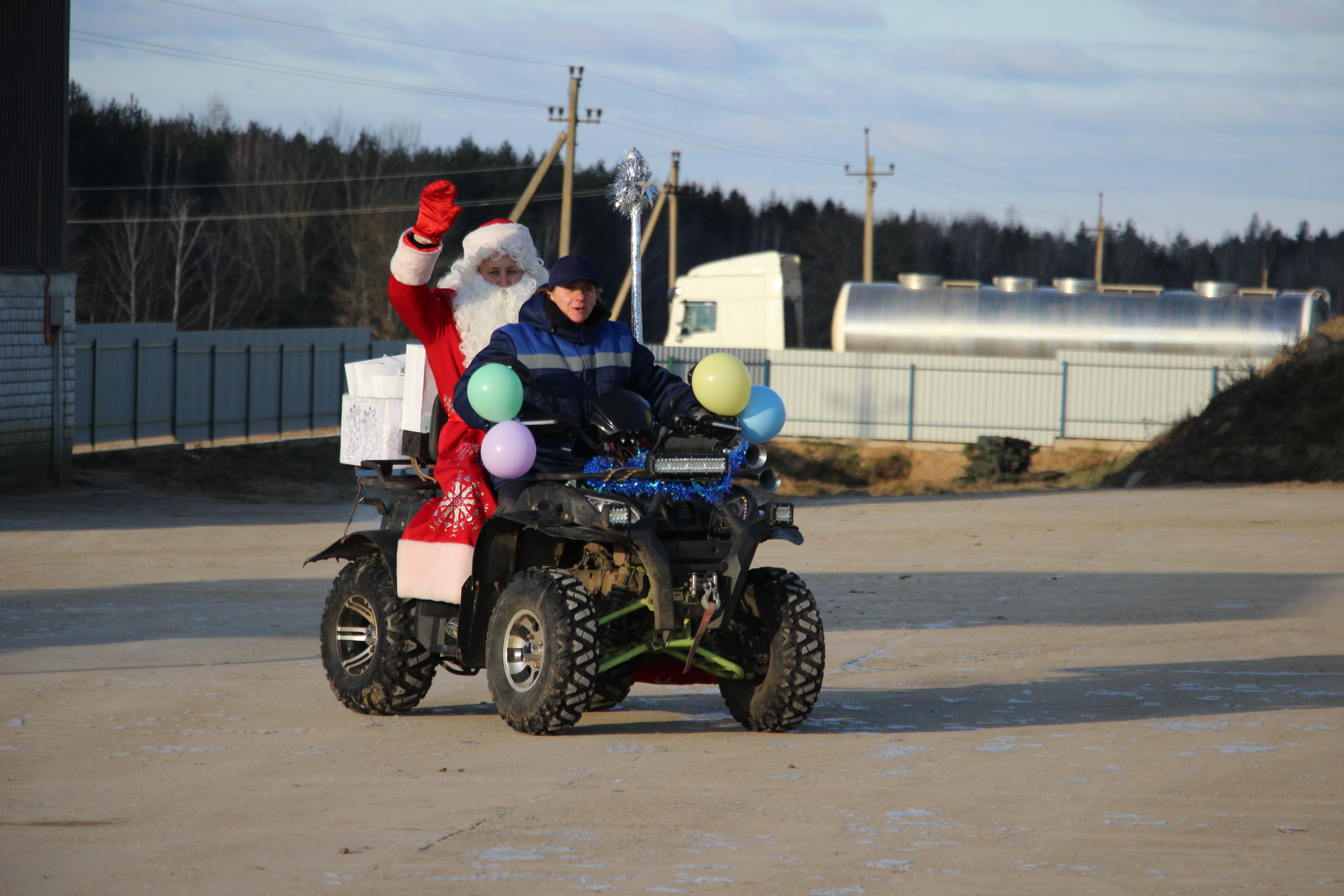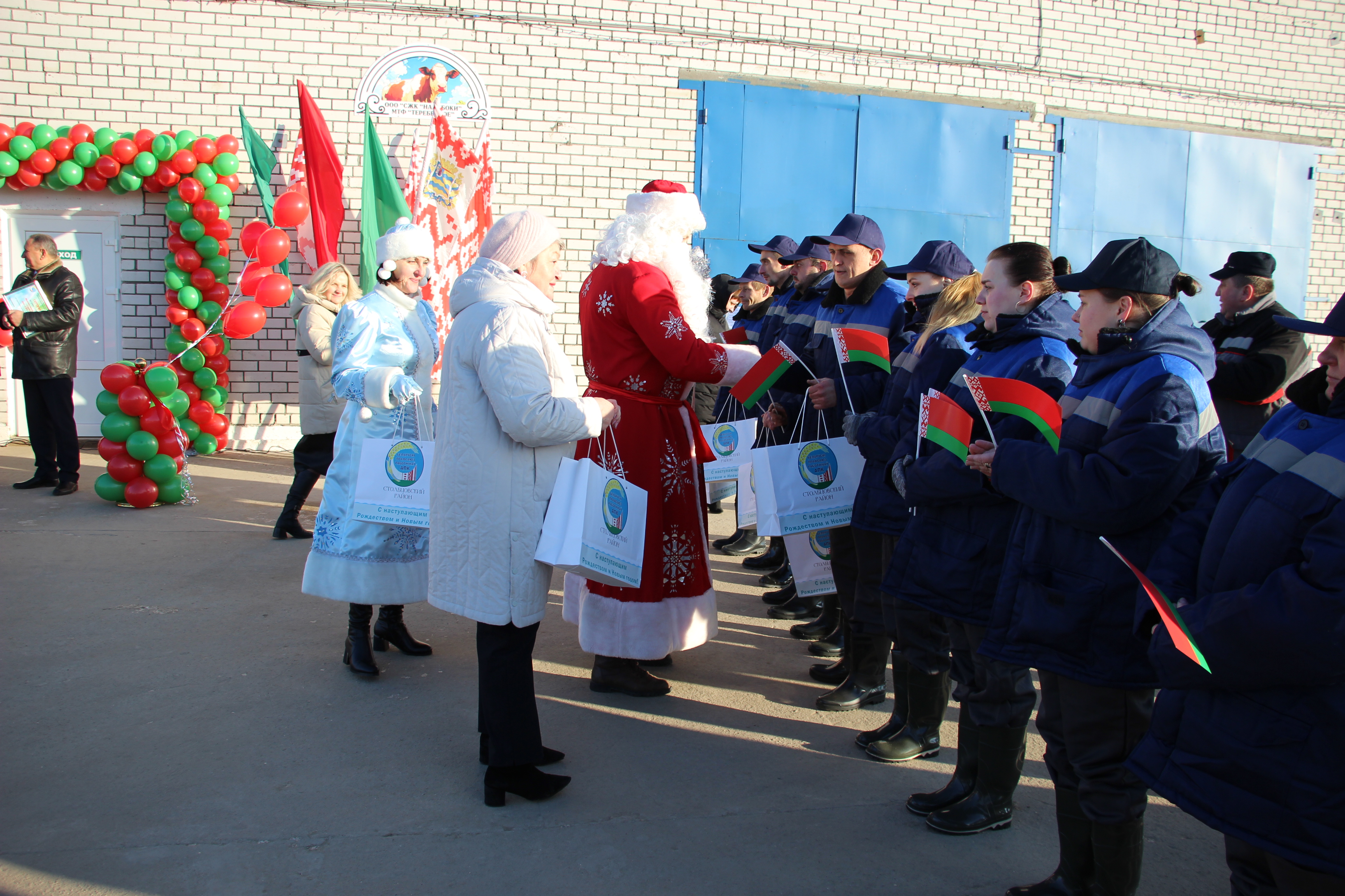 Работники комплекса получили подарки от районной профсоюзной организации работников АПК, их вручили сказочные персонажи — Дед Мороз и Снегурочка.