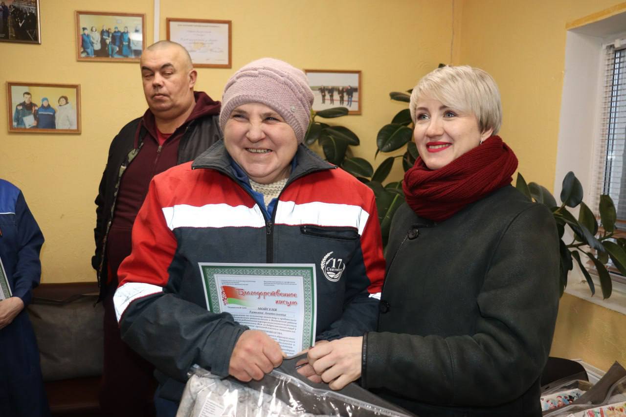В рамках проведения акции председатель Мядельской районной профсоюзной организации Татьяна Сивицкая отправилась на МТФ “Лукъяновичи”. В знак благодарности профсоюзный лидер подарила коллективу чайник, набор кружек и сладкие подарки.