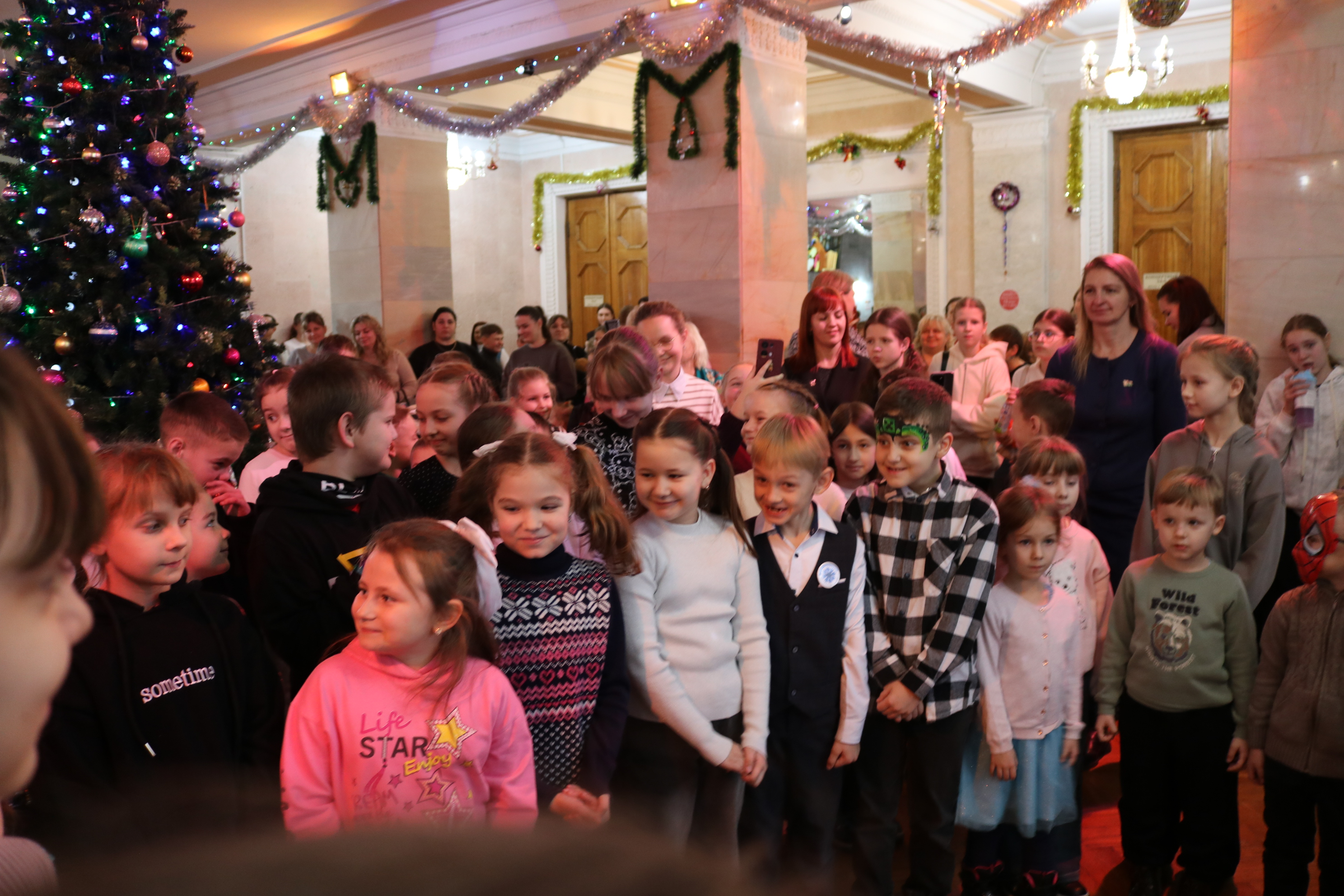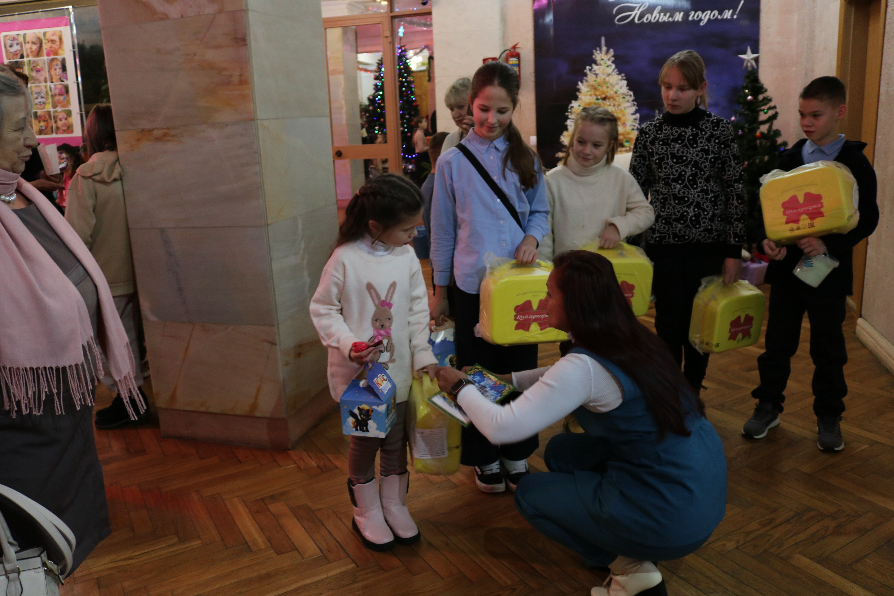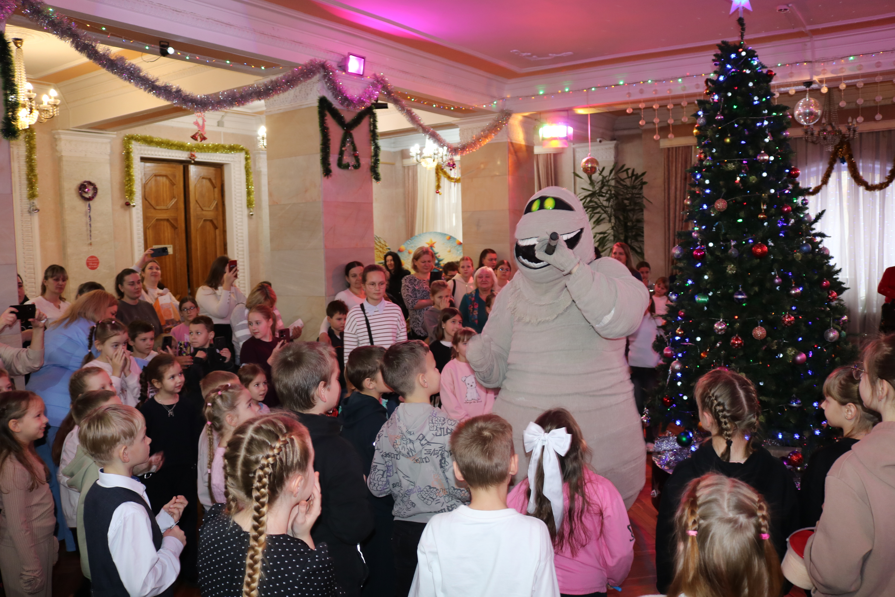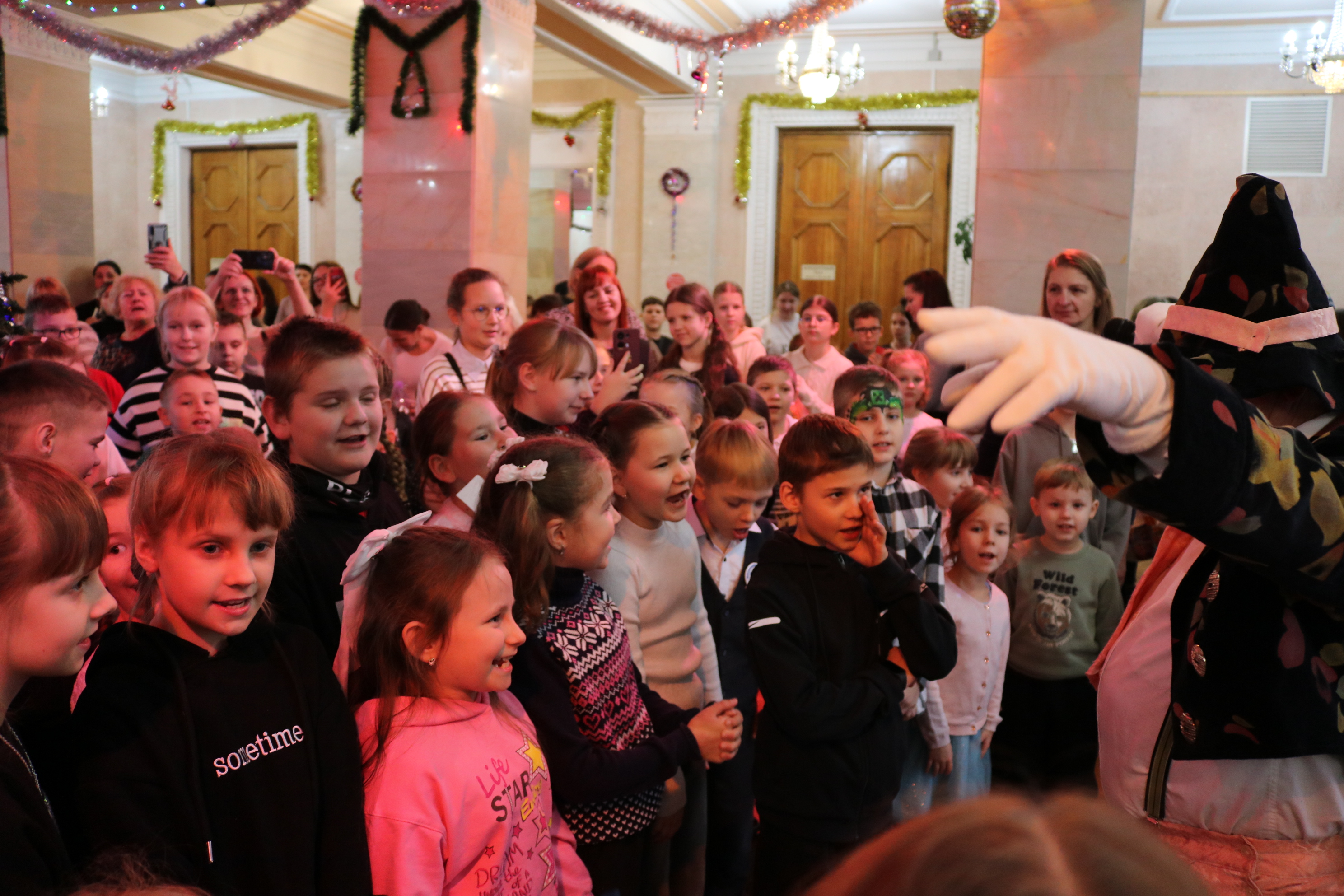 Ребята собрались во Дворце культуры ветеранов, чтобы вместе с родителями окунуться в атмосферу новогоднего волшебства. Мероприятие началось с весёлых развлечений для детей: они потанцевали с ростовыми куклами и поиграли с весёлым клоуном. Это создало праздничное настроение и позволило детям сразу погрузиться в атмосферу праздника.