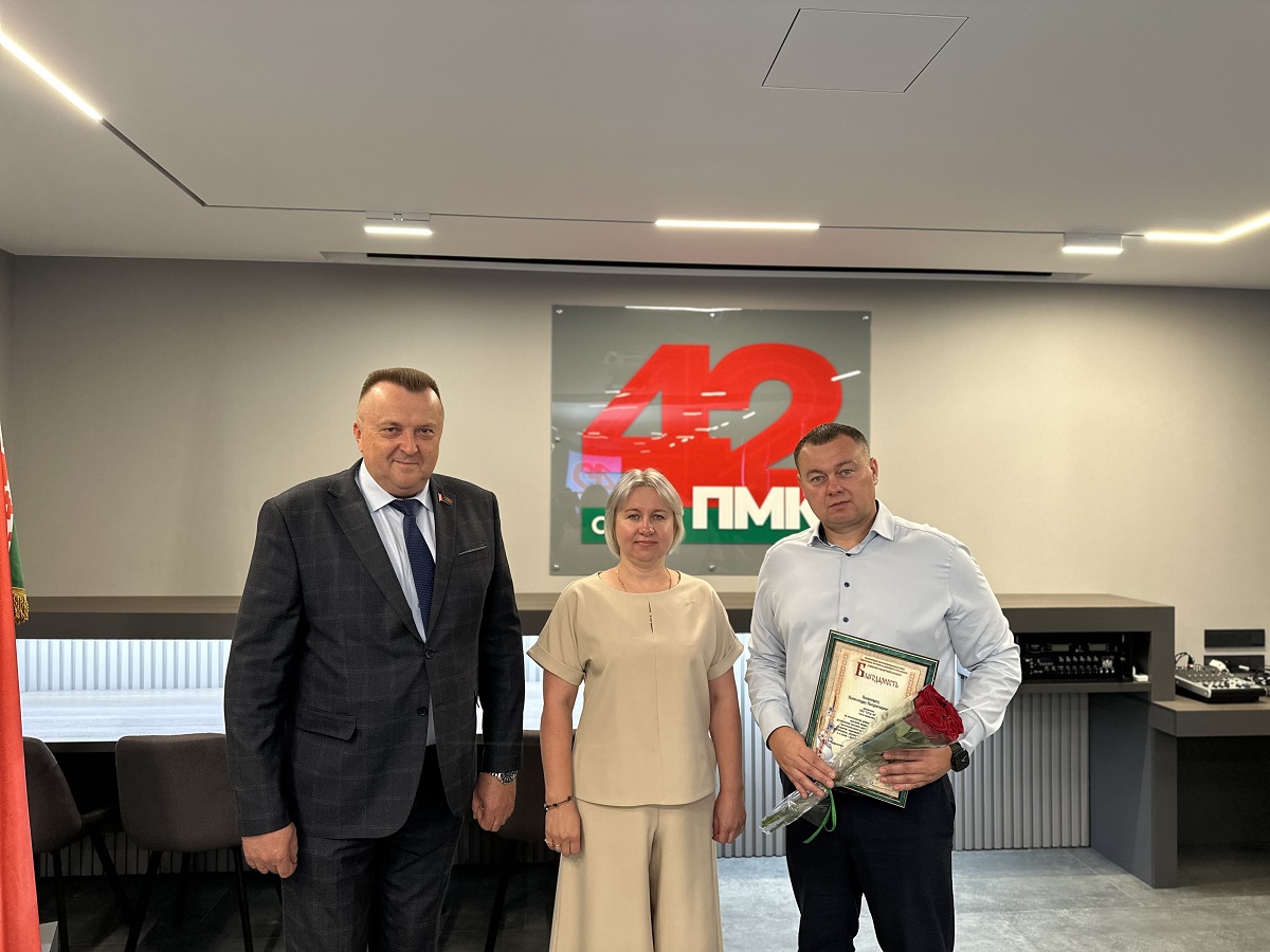 В преддверии профессионального праздника – Дня строителя – председатель Минской районной профсоюзной организации работников АПК Ирина Ковалева совместно с депутатом Палаты представителей Национального собрания Анатолием Булавко сердечно поздравила работников строительной отрасли ОАО «ПМК-42» с этим значимым событием!