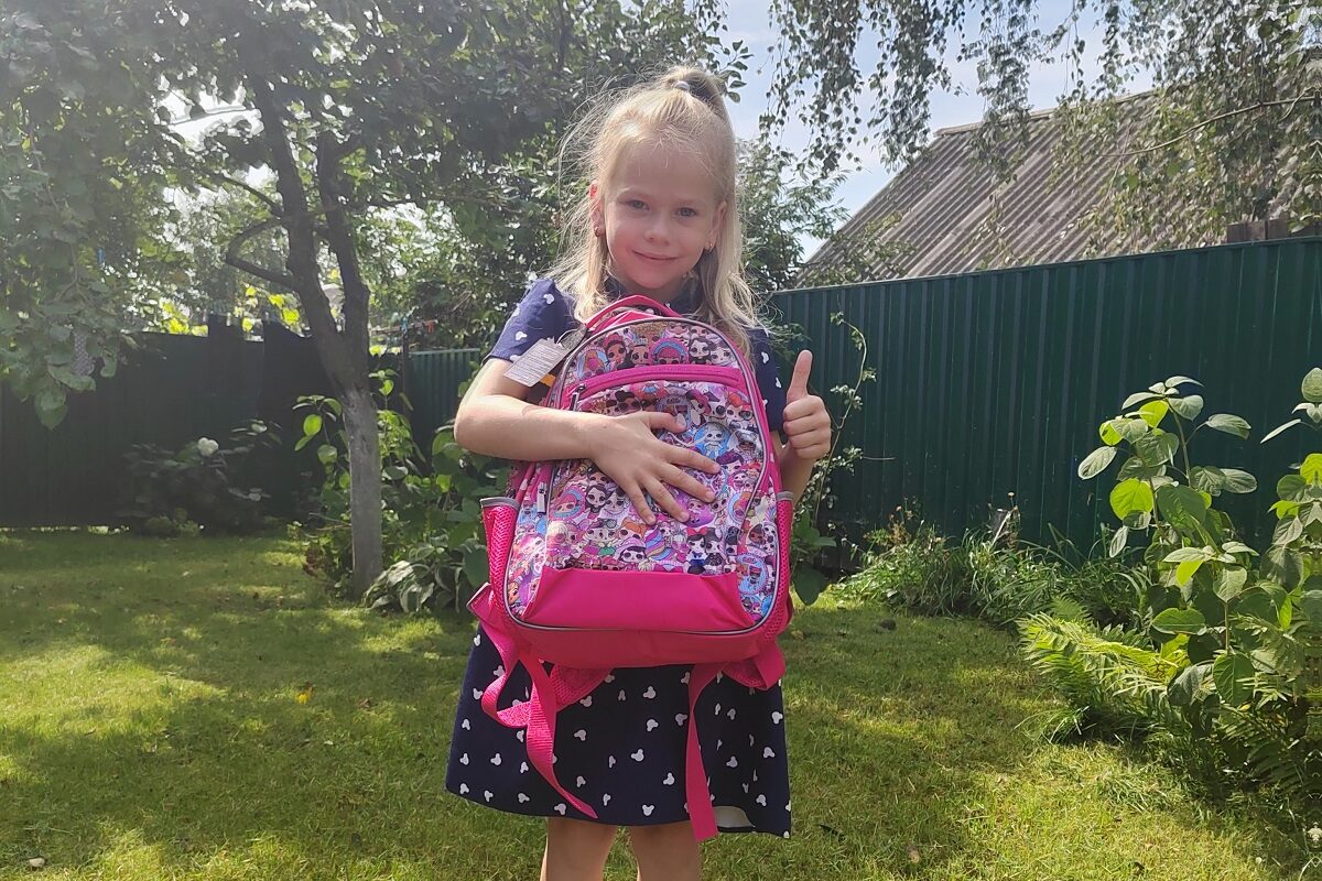 — Портфель очень красивый и тяжёлый. В школе буду учиться на десятки, — с улыбкой сказала Екатерина.