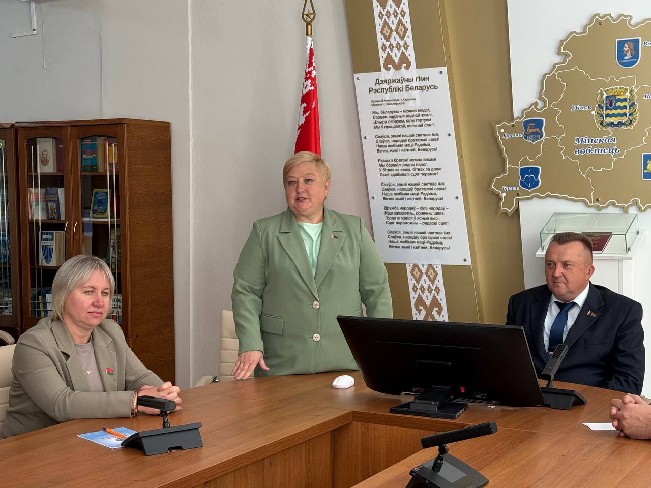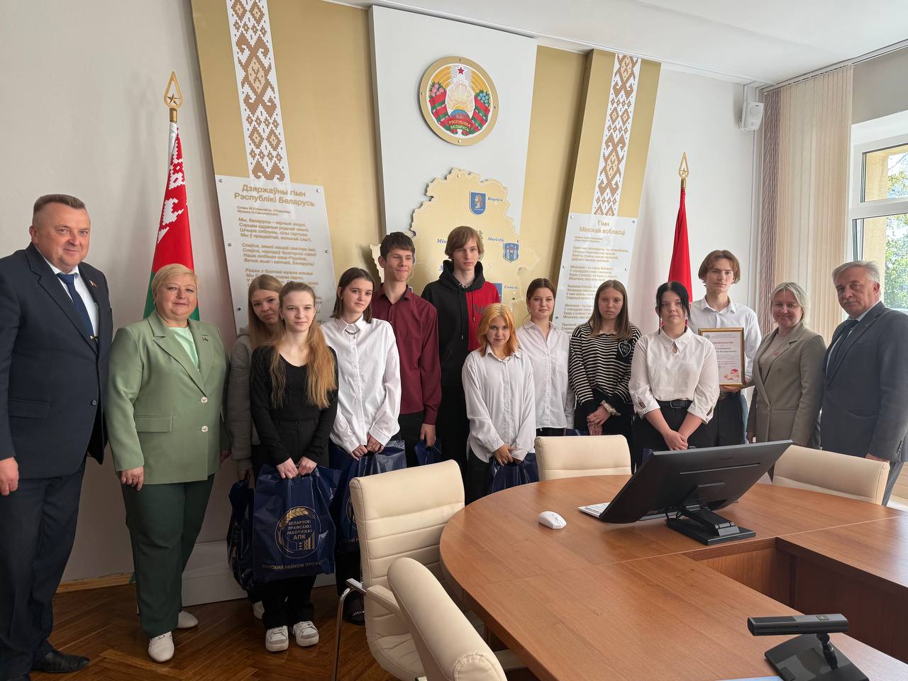 В гости к учащимся приехали депутат Палаты представителей Национального собрания Республики Беларусь Анатолий Булавко, председатель Минской областной профсоюзной организации работников АПК Оксана Бельская и председатель Минской районной профсоюзной организации работников АПК Ирина Ковалева.