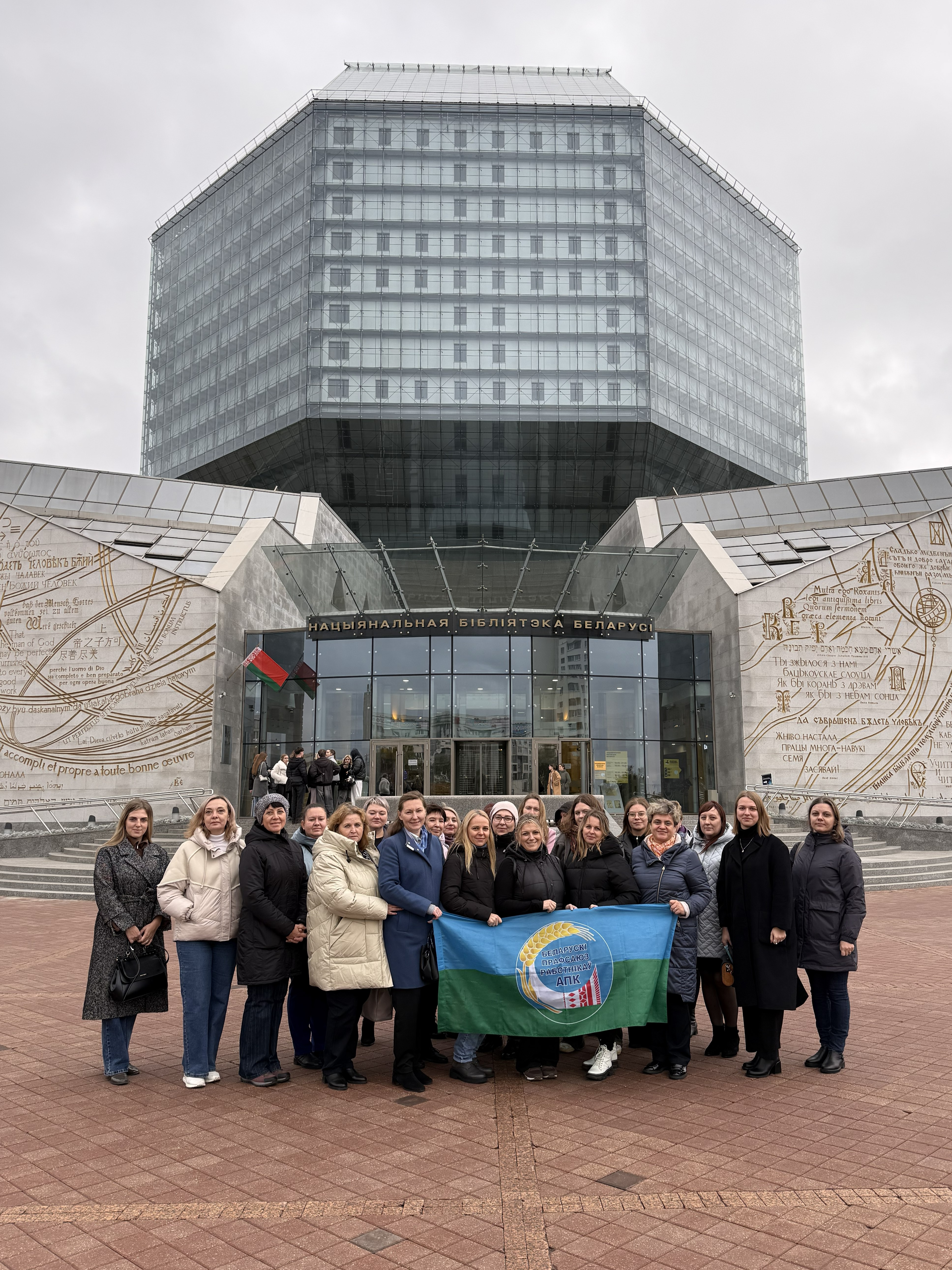 Завершающим пунктом экскурсии стало посещение Национальной библиотеки. С её открытой смотровой площадки открывается великолепный вид на Минск: парк Писателей и проспект Независимости.