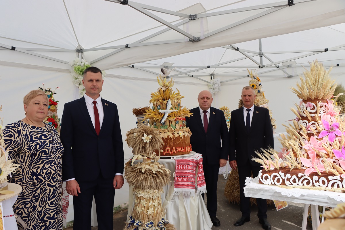 Главный символ праздника – районный каравай – вручили председателю райисполкома Андрею Атрушкевичу.