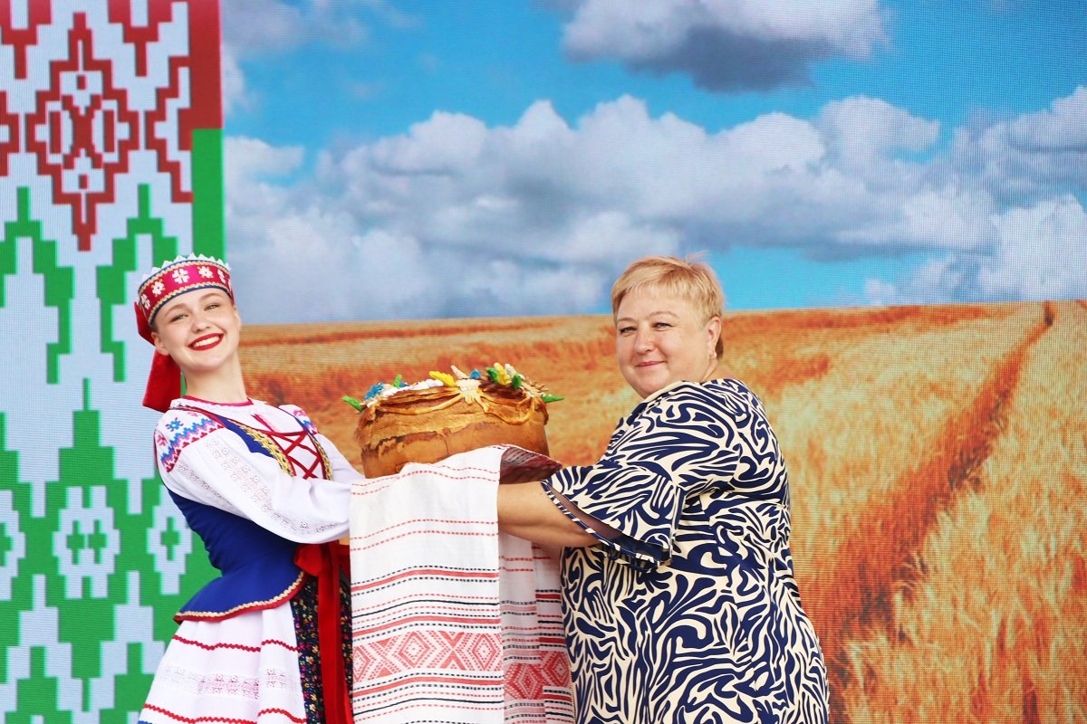Каравай от столбцовских хлеборобов принимала почётный гость праздника – председатель Минской областной профсоюзной организации работников АПК Оксана Бельская.